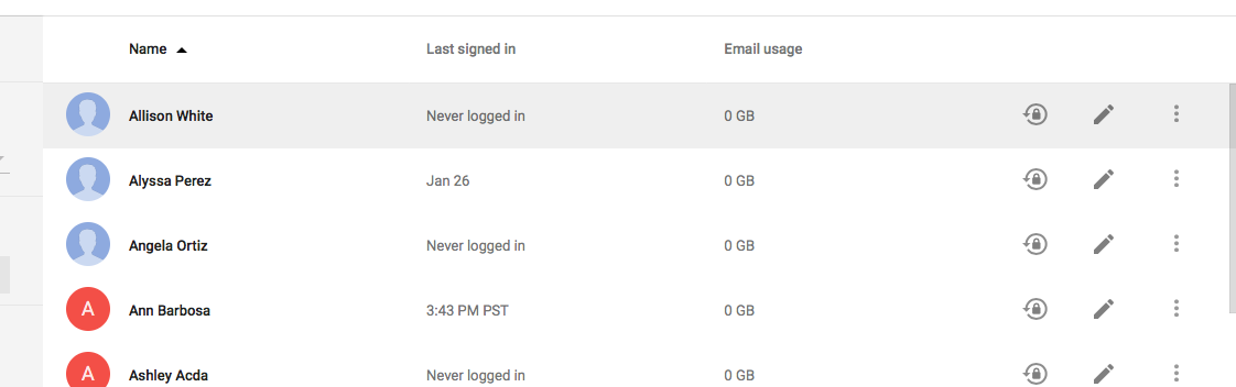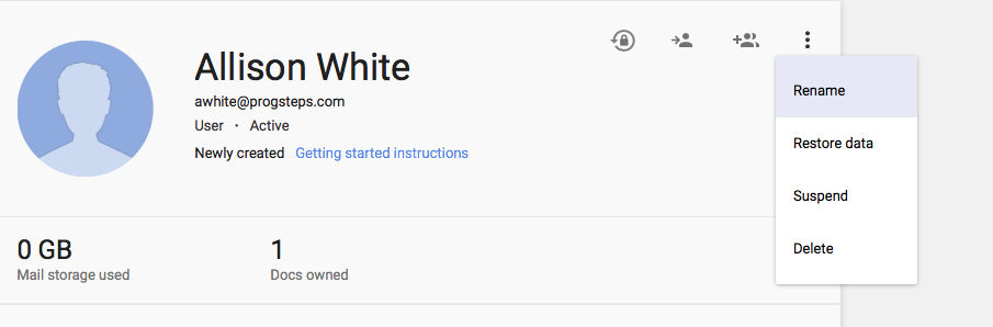 You can Rename, Suspend, Delete users etc. by clicking the (3 vertical dot icon) button, then the appropriate button under